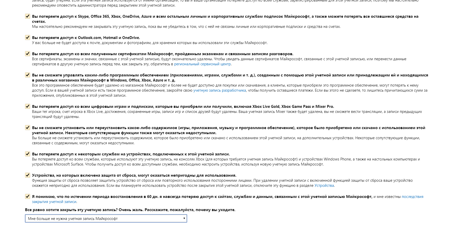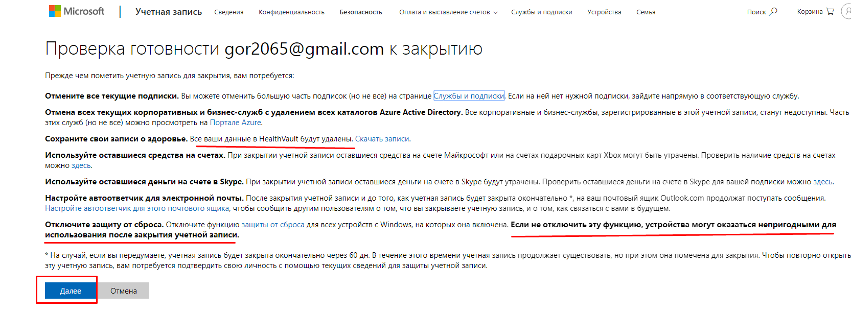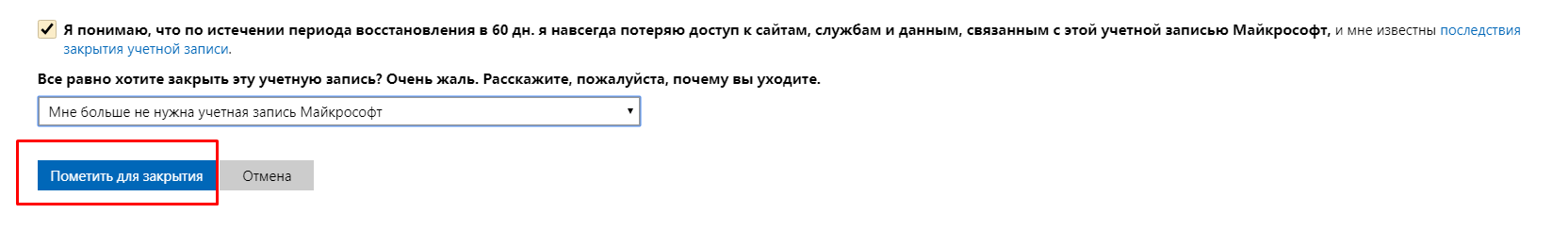 Во-первых, Майкрософт необходимо проверить, что учетную запись закрываете действительно вы.