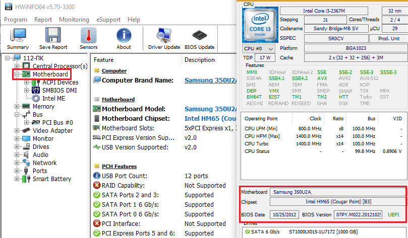 Бесплатная программка HWiNFO32/64 – один из лучших, на мой взгляд, инструментов анализа и мониторинга состояния аппаратных ресурсов ПК. Что касается сведений о материнке, то он отображает не только ее марку и модель, но и версию шины PCI-e, USB, чип мультиконтроллера (Super I/O), набор функций чипсета и BIOS, а также многое другое. Знающий пользователь получит с помощью HWiNFO почти исчерпывающую информацию о своем железе.