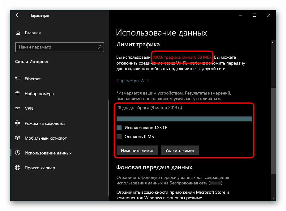 Когда вы достигнете установленного лимита, операционная система уведомит вас об этом соответствующим окном, где также будет содержаться инструкция об отключении передачи данных:
