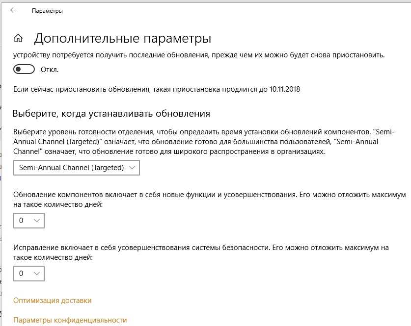Вновь вернитесь в окно настроек, после чего перейдите в «Обновление и безопасность», после чего в разделе «Центр обновления Windows» нажмите «Дополнительные параметры», а затем кликните «Выберите, как и когда получать обновления» (ссылка внизу страницы).