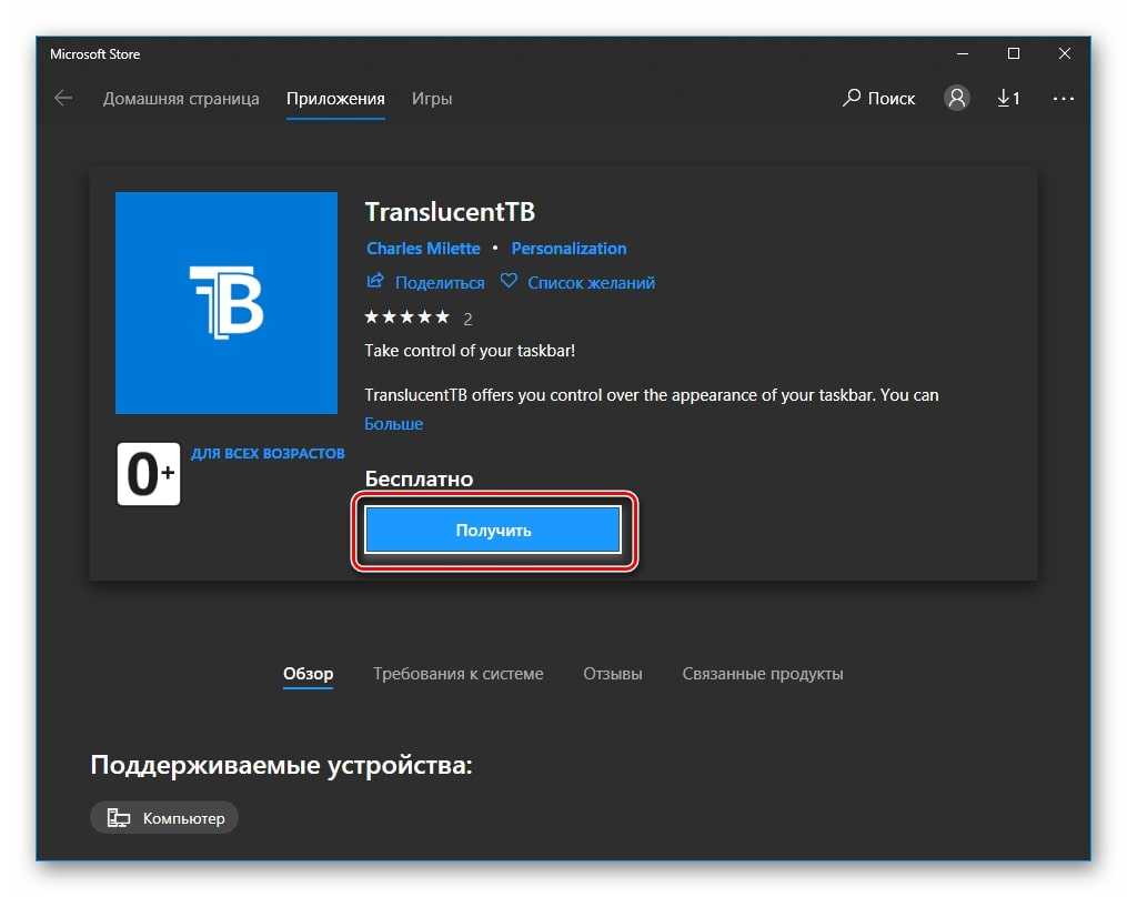 - Скачать TranslucentTB с официального сайта Microsoft и установить её, следуя всем инструкциям установщика.