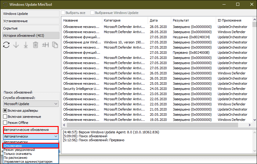 – русскоязычная бесплатная утилита для управления апдейтами Windows. Помимо отключения Центра обновлений, она дает возможность: