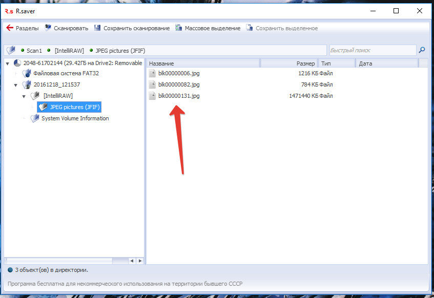 В моем случае, я должен был увидеть три картинки, которые я записал на флешку до форматирования.