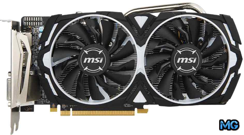 Рейтинг видеокарт до 10000 рублей для игр пополняет MSI RX 570 ARMOR 4G, которая представлена в двух вариациях. Версия GAMING X 4G отличается яркой подсветкой, более высокой тактовой частотой памяти и ядра. Armor оформлена без излишеств, оборудована тихим кулером и стоит на 60% дешевле.