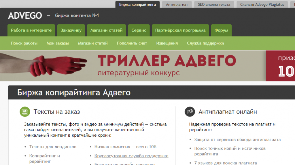 Если думаете как заработать на Advego, то это Ваш основной вариант. Потому что чтобы продавать статьи нужно успешно выполнить 10 заказов. Заказов на бирже достаточно много и их сложность варьируется. Так что и новичку, и профи будет за что зацепиться глазом. Цена заказа в среднем от 20 до 50$.