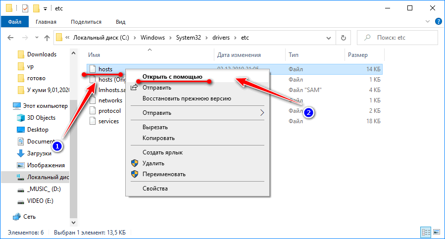 - Переходим по пути — C:\Windows\System32\drivers\etc\. После чего в нашем распоряжении появится редактирование файла host.