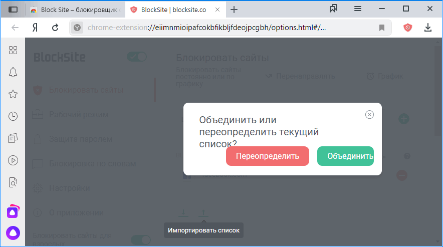 Для интернет-обозревателей на движке Chromium, к которым относится и Яндекс.Браузер, созданы тысячи дополнений. Среди них есть инструменты, позволяющие заблокировать сайт, чтобы он не открывался. Block Site позволяет создать черный список интернет-ресурсов и синхронизировать настройки с мобильной версией.