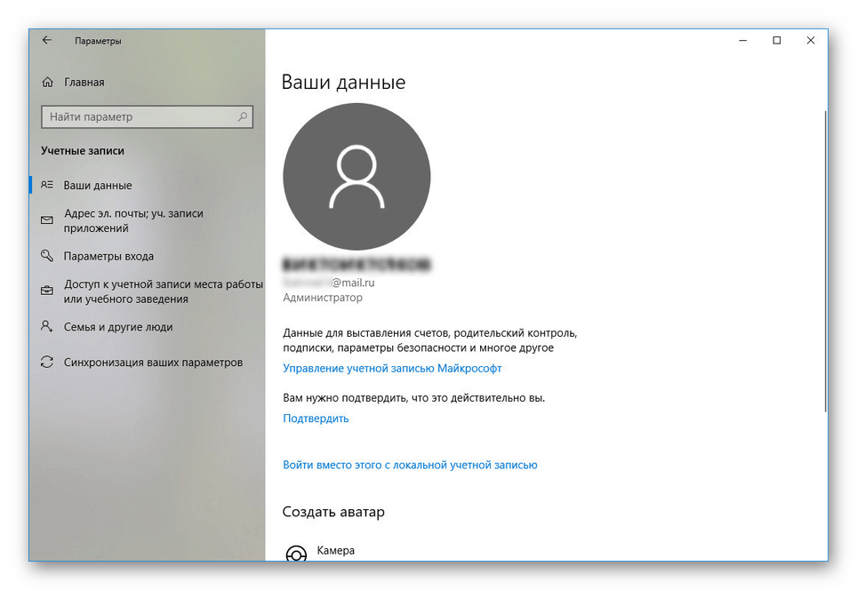 Данные о пользователе и учётной записи в Microsoft выглядит приблизительно так