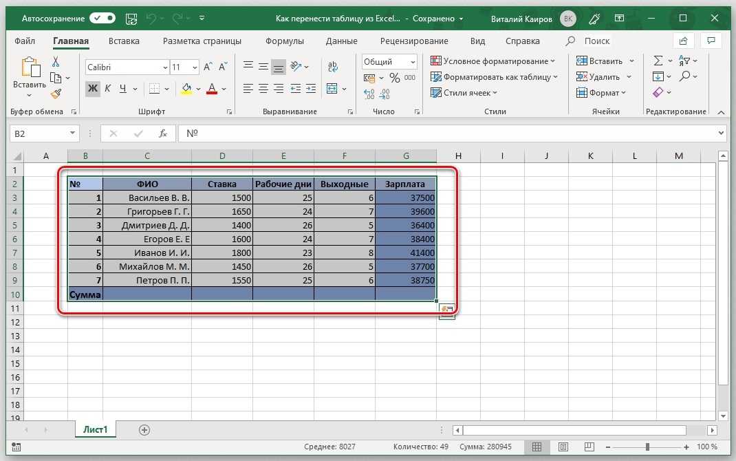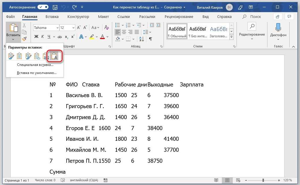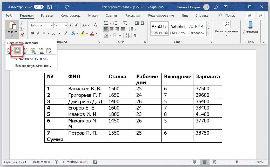 Способы переноса таблицы из Microsoft Excel в Word