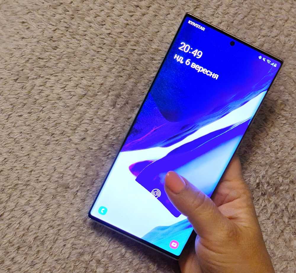 Сканер отпечатков пальцев под поверхностью экрана такой же, как и на Galaxy S20 Ultra. Достаточно хорошо работает, когда палец сухой, но проблемы начинаются, когда он мокрый или влажный, даже от пота или дождя.