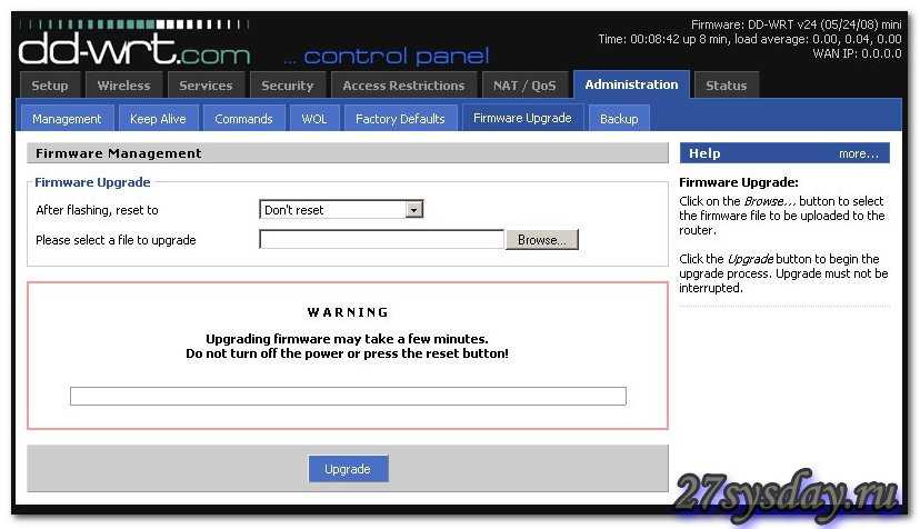 - Из «заводского» web-интерфейса, вы прошиваете в Mini (dd-wrt):