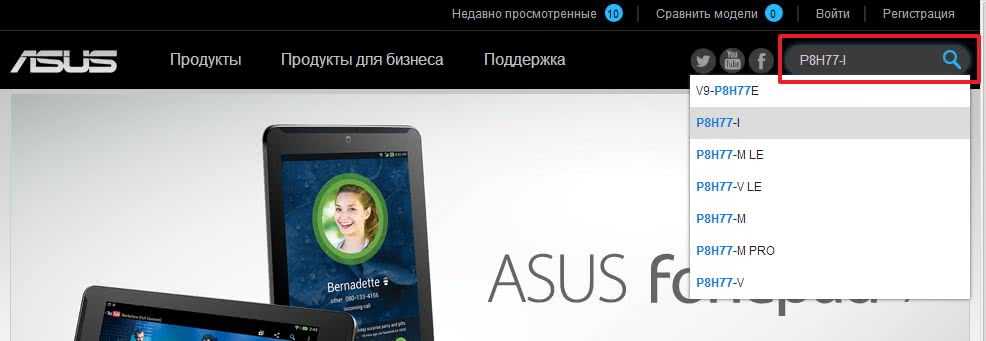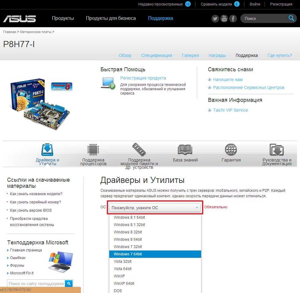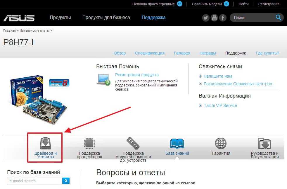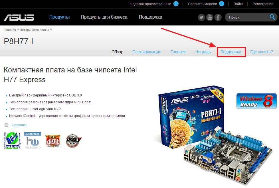 Самые свежие драйвера, будем искать на сайте производителя оборудования. В нашем примере — материнской платы ASUS P8H77-I.