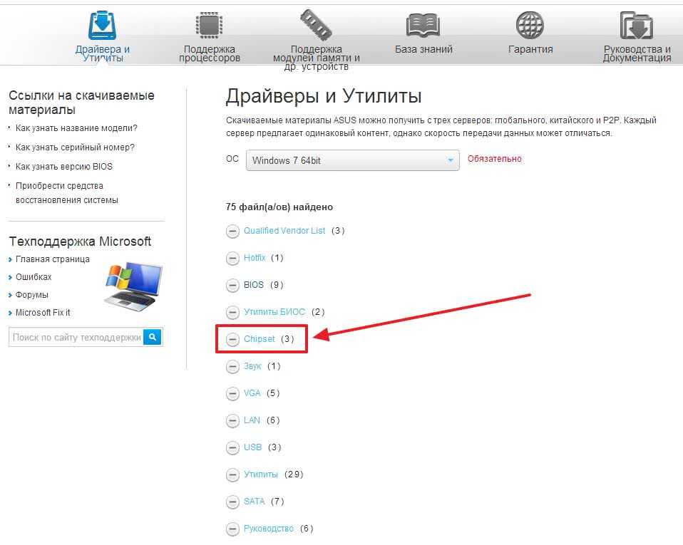 Результат поиска вы видите на рисунке ниже. В первую очередь нас интересует драйвера на Чипсет.