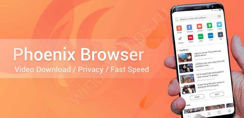 Если вы хотите скачать самый легкий браузер на Андроид, отдайте предпочтение Phoenix Browser. Это проверенное приложение с быстрой загрузкой видео, плагином WhatsApp Status Silver, просмотром в режиме инкогнито и другими особенностями. Домашний экран немного загружен, но легкий в настройке. Первоначально на главной странице отображаются новости, реклама игр и перечень страниц, но все это можно выключить.