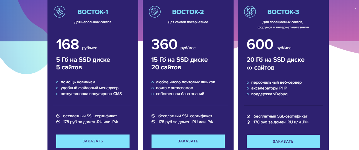 Хостинг Sprinthost подходит тем веб-мастерам, которые «держат» по несколько сайтов. У хостера есть отличный тариф «Восток-1», в рамках которого можно разместить на серверах сразу 5 ресурсов и платить за это всего 168 рублей в месяц (или 118 рублей при условии оплаты за год сразу). Для сравнения, «Бегет» за ту же сумму позволяет загрузить всего 2 сайта и выделяет 3 Гб вместо 5 Гб – как у Спринтхост.