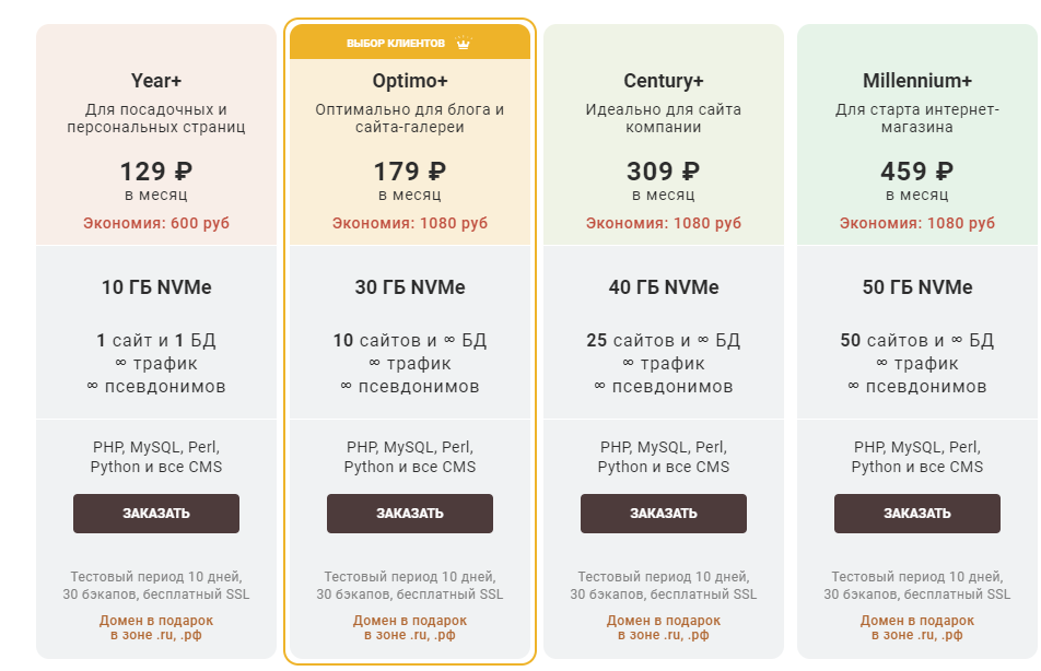 Воспользовавшись любым из тарифов этого хостинга, вы получаете: