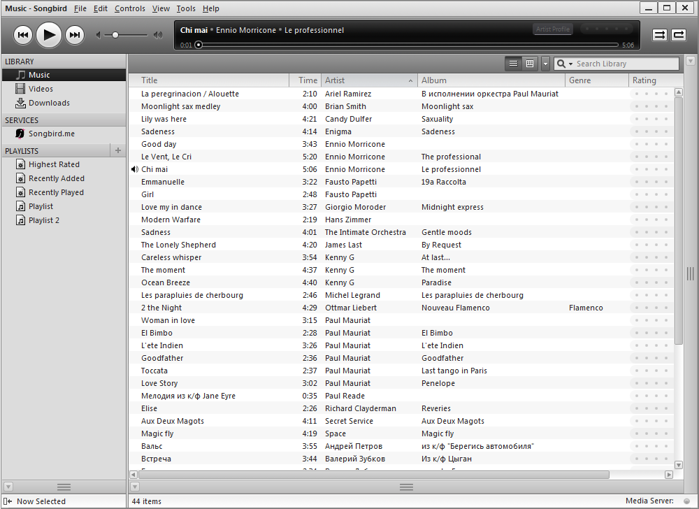 Songbird — это достаточно скромный, но очень удобный и интуитивный аудиоплеер, коньком которого является поиск музыки в интернете, а также удобная и логичная структуризация медиафайлов и плейлистов. Программа не может похвастать перед конкурентами функциями редактирования музыки, визуализациями и наличием звуковых эффектов, зато имеет простую логику процессов и возможность расширения функционала за счет дополнительных плагинов.
