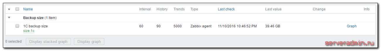 Сохраняем шаблон. По желанию создаем для него триггеры и графики. Можно и без них. Добавляем шаблон к серверу, который хотим мониторить. Ждем некоторое время и идем проверять входящие данные. Открываем Monitoring — Latest data: