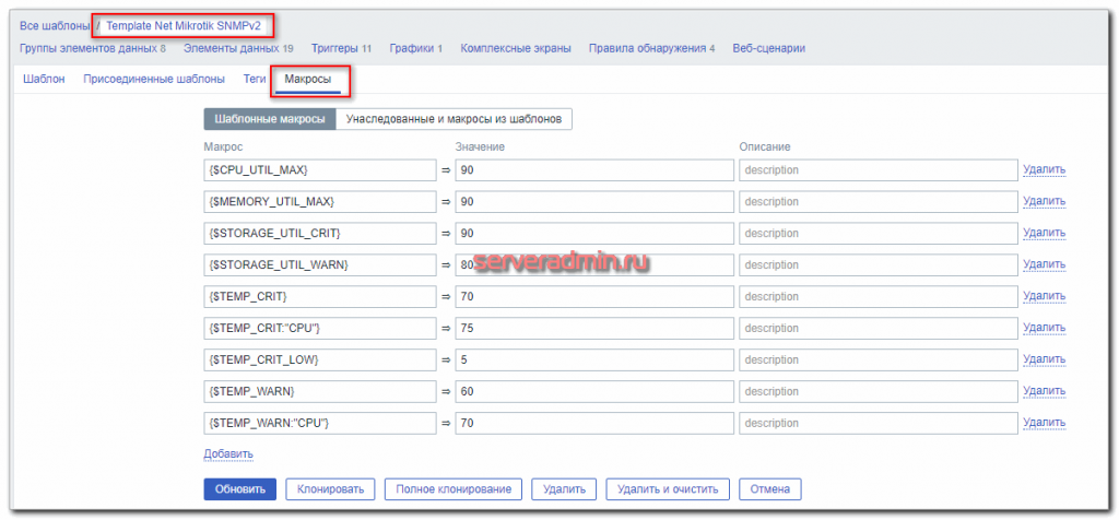 По умолчанию Zabbix поставляется с большим разнообразием шаблонов мониторинга.