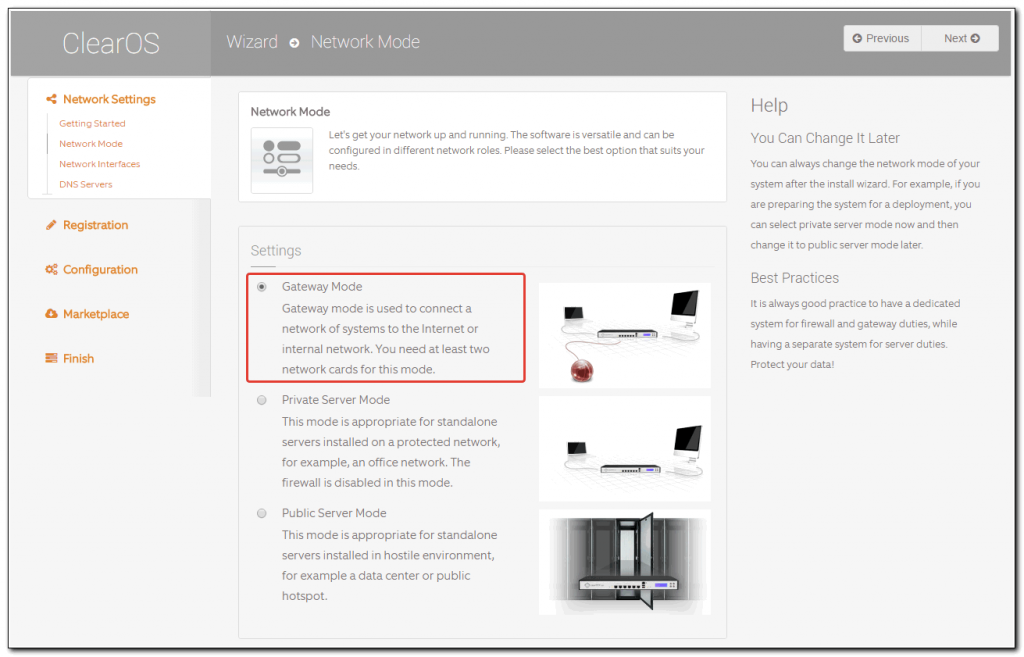 Я не буду приводить описание всех шагов настройщика. Остановлюсь только на ключевых. Вам зададут вопрос про Network Mode. Мы настраиваем шлюз, поэтому выбираем Gateway Mode.