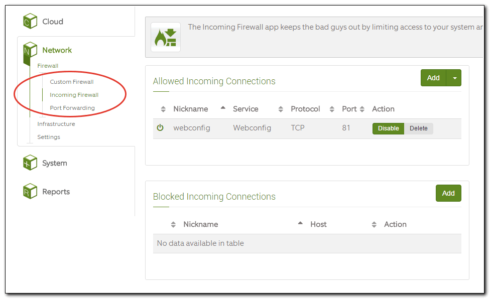Сразу уточню, что по-молчанию в firewall заблокировано все, что не разрешено явно. То, что в разделе Incoming Firewall указано как открытый входящий порт 81, на сервере выглядит немного не так. Открыт не только входящий порт, но и исходящий. Я же в ручном правиле открыл только входящий порт, не указав исходящий. В итоге доступ к серверу потерял. Не повторяйте моих ошибок. С фаерволом работайте очень аккуратно и без особой надобности не трогайте правило, которое разрешает подключение к серверу по 81-му порту.