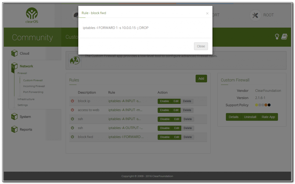 С настройкой firewall в clearos закончили. Обозначил основные функции.