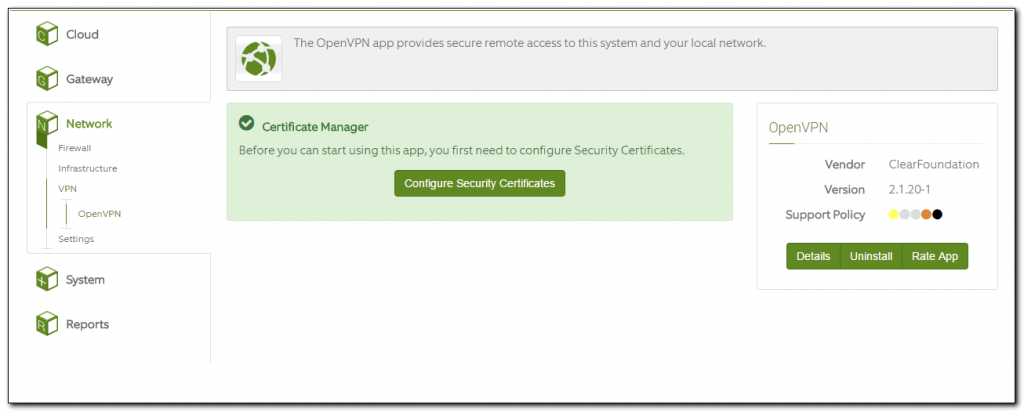 После создания сертификатов снова возвращаемся в раздел OpenVPN и разрешаем создать в фаерволе необходимые правила.