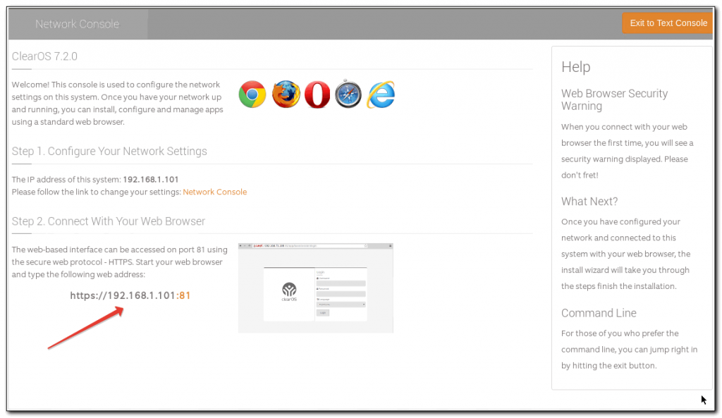 Для продолжения настройки clearos необходимо в браузере открыть страницу по ip, указанному в установке. В моем случае это https://192.168.1.101:81. При входе браузер предупредит о недоверенном сертификате. Так и должно быть, все равно переходите на страницу. Вас встречает окно логина в систему.