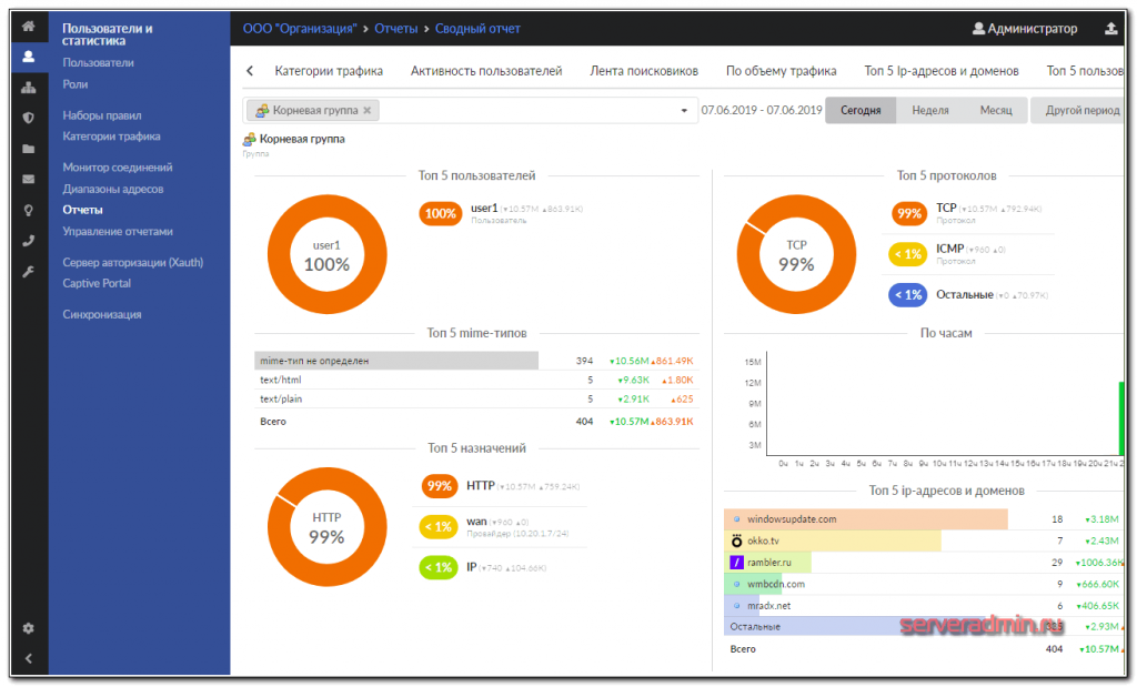 - «Источник» — позволяет задать в качестве источника трафика IP-адрес или сеть, для которых не будет производиться аутентификация в прокси-сервере. Тогда трафик, идущий с указанного IP-адреса или сети не будет учитываться в статистике за определенными пользователями, но будет учитываться в общей статистике.