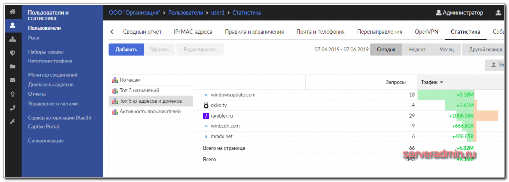 По пользователю доступна полная статистка в удобном виде. Ее можно посмотреть как в разрезе самого пользователя, так и в целом по системе. Вот пример статистики пользователя.