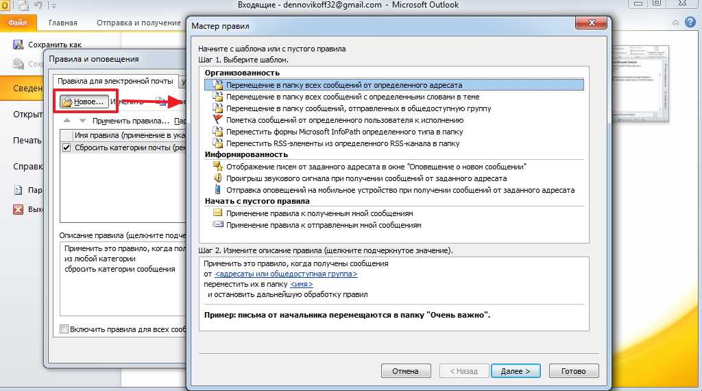 Совет 4: Как в Outlook сотворить правило