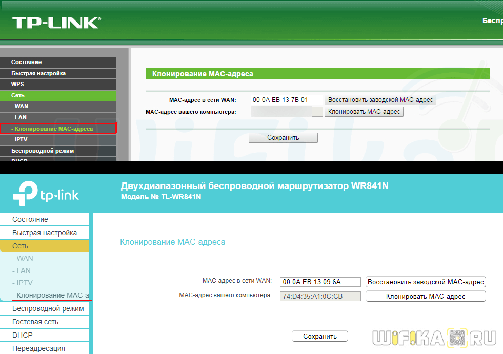 А в следующем пункте «Клонирование MAC адреса» можно подменить MAC адрес роутера на адрес компьютера — в сетях некоторых провайдеров до сих пор требуется использование одного МАК адреса, который был прописан при заключении договора на оказание услуг. В результате, если запустить роутер, то интернет просто не будет работать — на этот случай как раз и предусмотрен данный раздел.