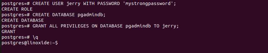 Далее сменим пароль для пользователя postgres, от которого будет происходить подключение к СУБД