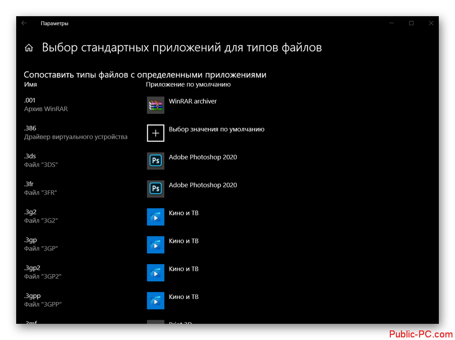 Откроется длинный список с расширениями файлов и приложениями, которые их открывают по умолчанию. Изменить настройки легко: левая кнопка мышки – и выбор программы из списка.