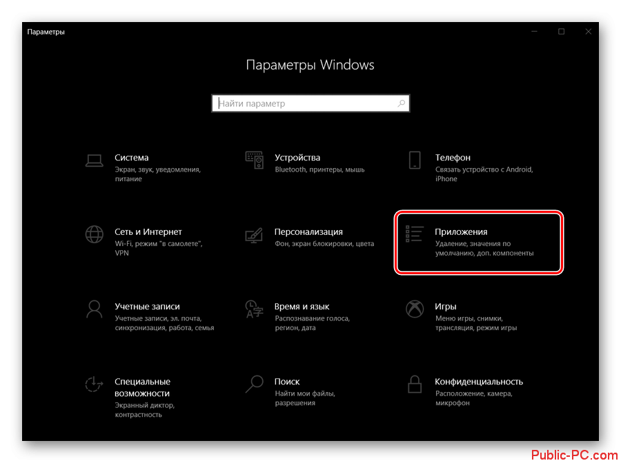 открыть раздел «Параметры» (относится к характеристикам операционки, позволяет редактировать установленные значения);