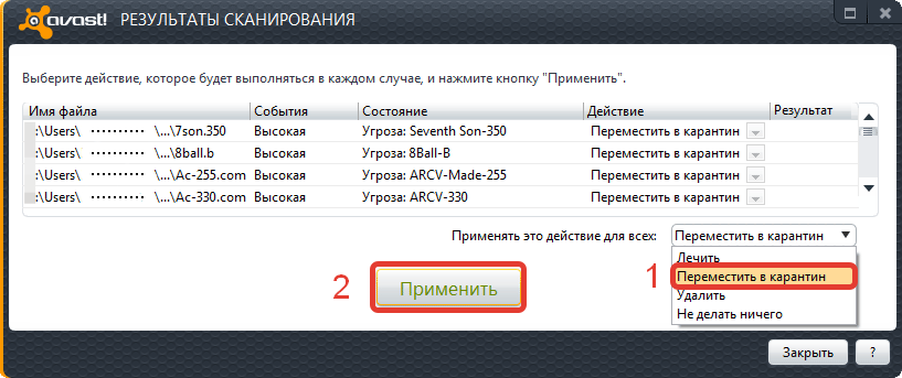 Шаг 4. При найденных на флешке вирусах их можно отправить в «Карантин» или удалить.