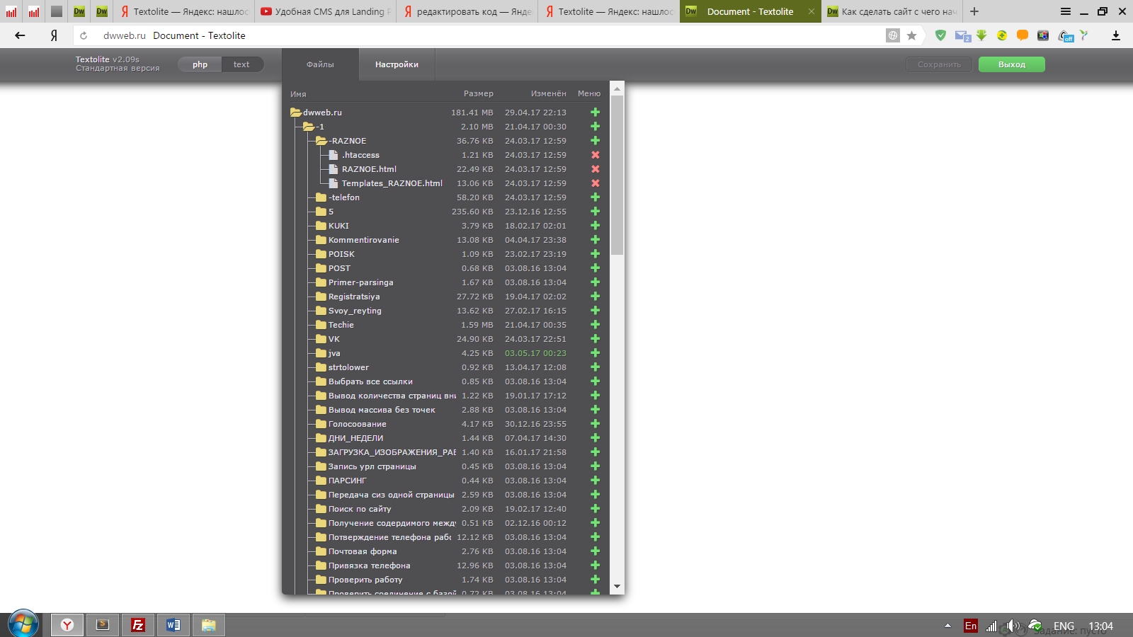 И после входа мы идем в файлы и открываем тот файл, который вам нужен. Но когда я, например нашел ошибку на сайте, то достаточно в адрес сайта, ну например https://dwweb.ru/_адрес_страницы изменить на https://dwweb.ru/Textolite/_адрес_страницы – открывается панель входа, после ввода пароля вы попадете на эту страницу. Которая только, что была открыта! Это очень удобно! Не нужно открывать несколько программ, редактировать в программе, потом загружать на сайт . Естественно, надо понимать, что папку Textolite надо переименовать, для избегания нахождения точки входа и подбора пароля…