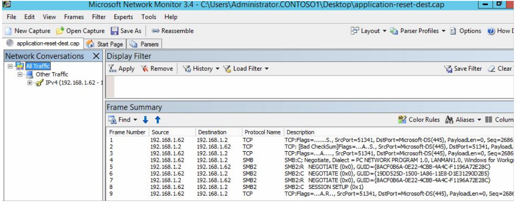 Если вы определили, что сбросы не вызваны переназначением или неправильным параметром или пакетами, которые были изменены с помощью трассировки сети, то сузили его до сброса уровня приложения.