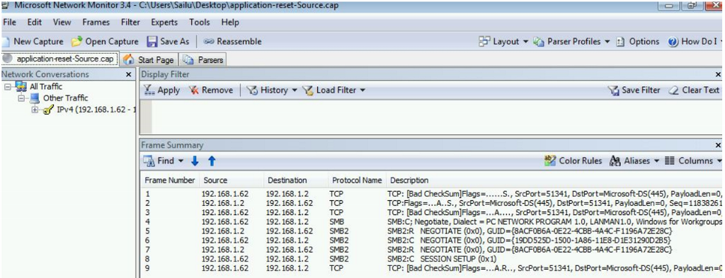 На снимках экрана ниже видно, что пакеты, которые видны в источнике и назначении, одинаковы без каких-либо изменений или любых сброшений, но вы видите явный сброс, отправленный назначением в источник.