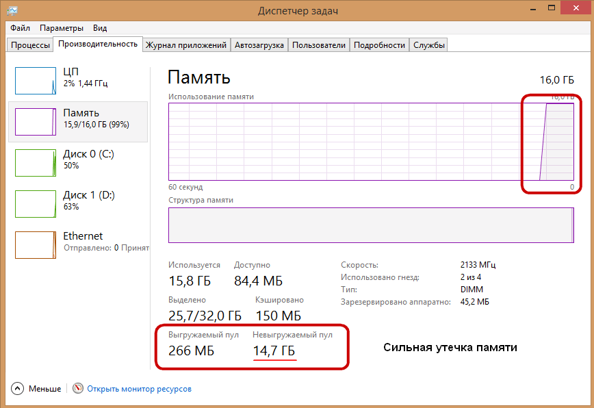 Не выгружаемый пул (невыгружаемый пул) занимает слишком много памяти