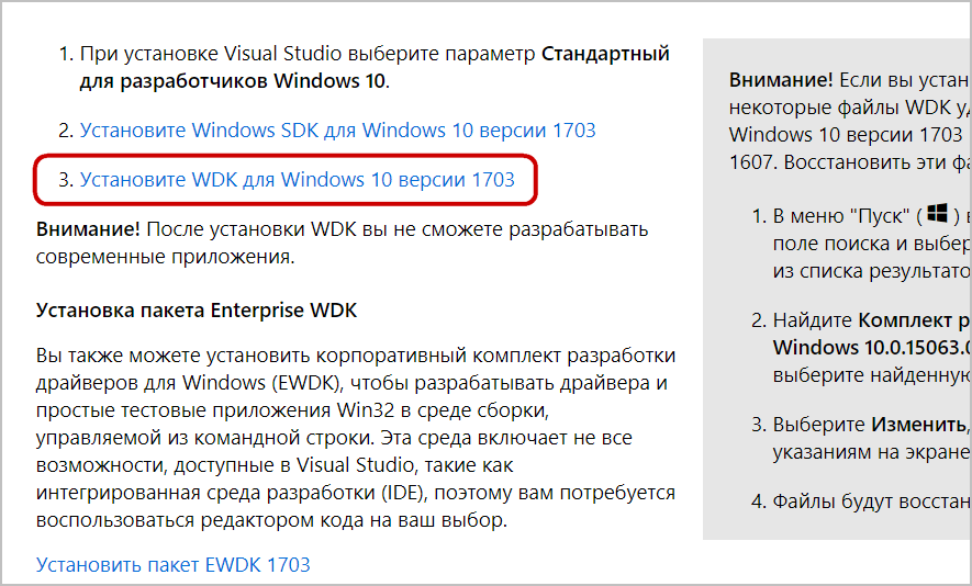 Скачав WDK для вашей версии Windows 10 с официальной страницы Microsoft.