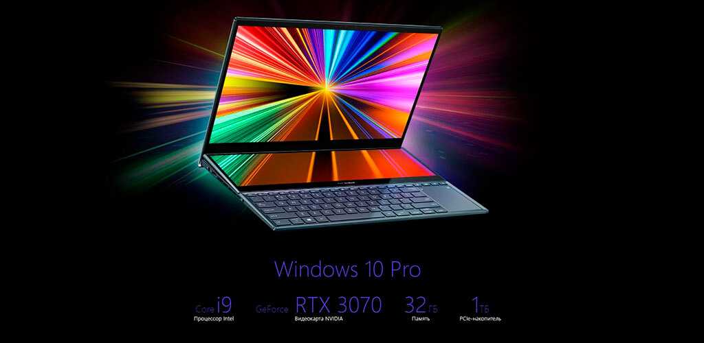 Дисплей ScreenPad Plus: 14 дюймов 3840×1100 пикселей, IPS, поддержка сенсорного ввода;