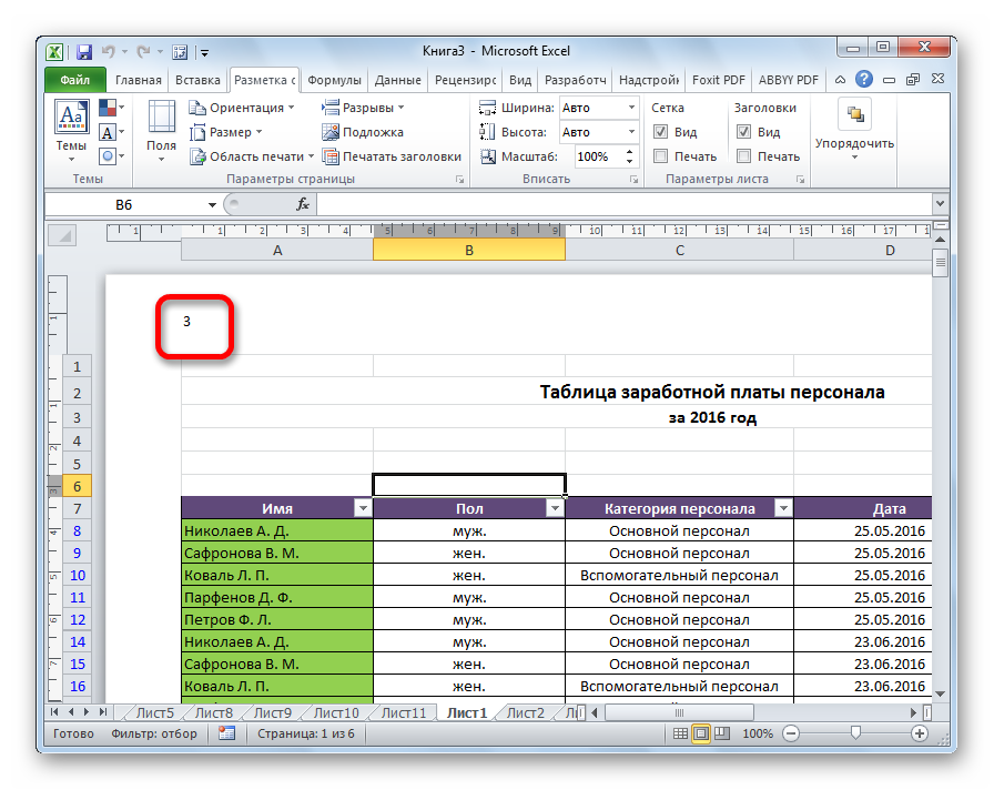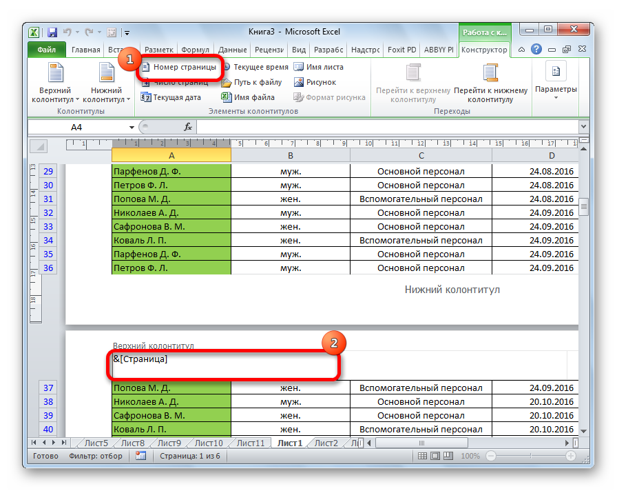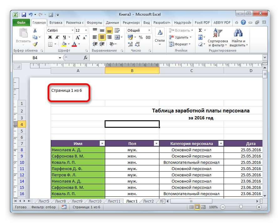 Теперь у нас отображается информация не только о текущем номере листа, но и об общем их количестве.
