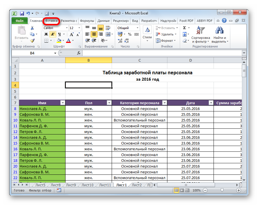- Прежде всего, нужно включить отображение колонтитулов. Переходим во вкладку «Вставка».