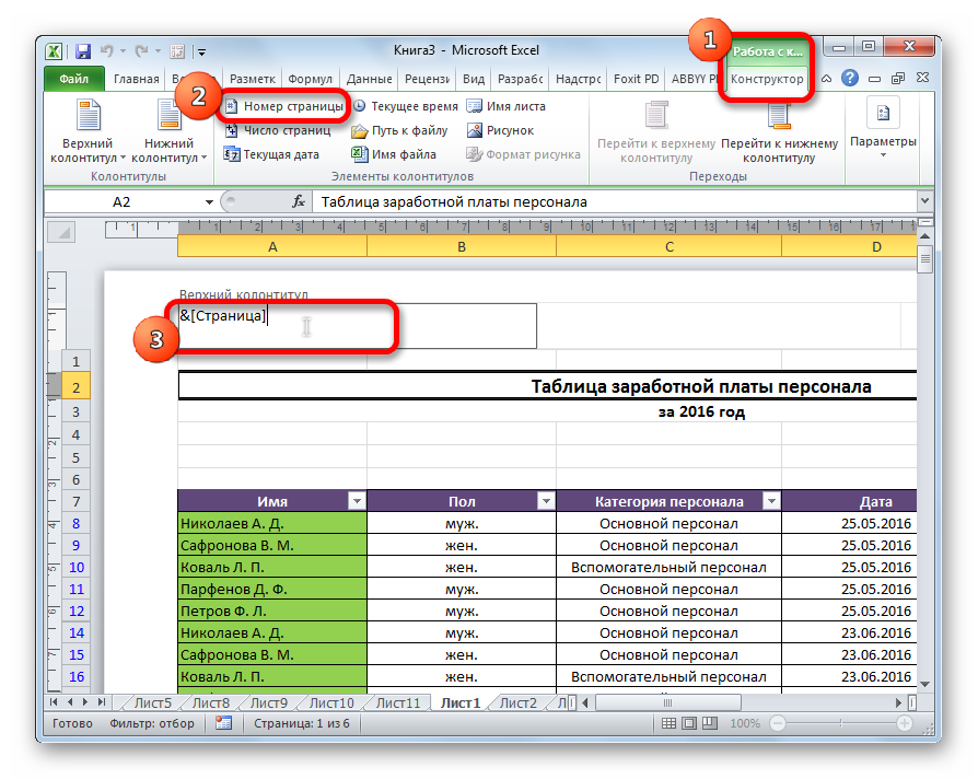 Кроме того, можно пронумеровать страницы в Excel с указанием их общего количества на каждом листе.