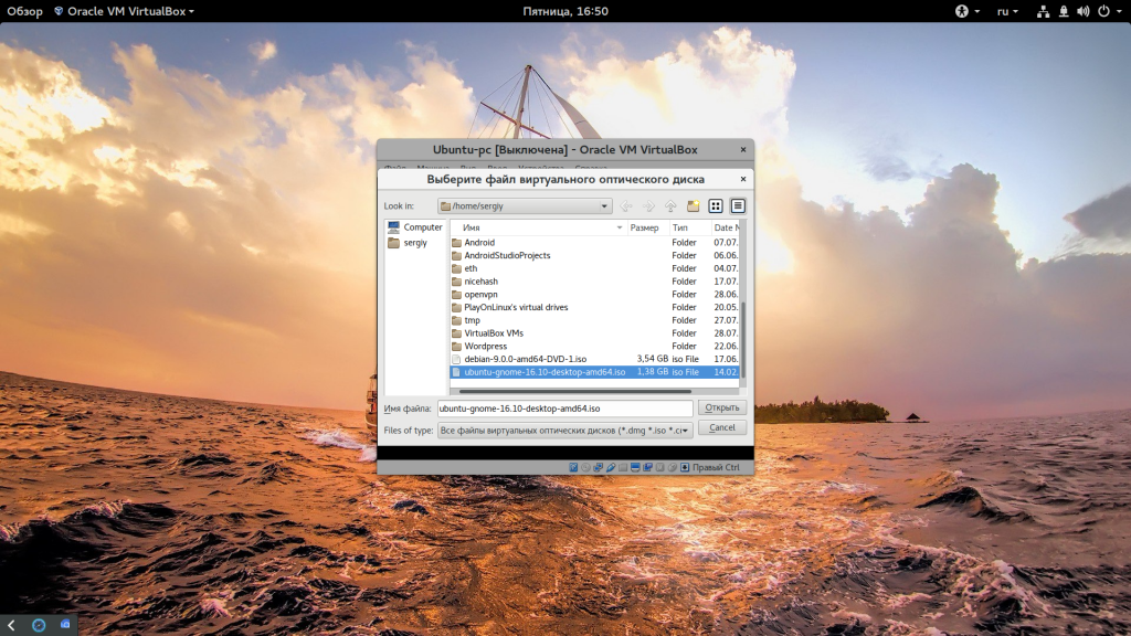 в файловом менеджере Наутилус, с помощью программы VirtualBox. Этот тип