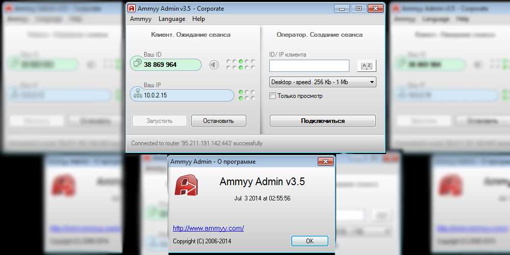 Программное обеспечение схоже с TeamViewer. Однако Ammyy Admin отличается более простым интерфейсом, ограниченным функционалом. Утилита бесплатная для некоммерческого использования (до 15 часов в месяц). Для безлимитного доступа к приложению нужно приобрести платную версию. Стоимость ниже, чем у TeamViewer, но и полезных функций в Ammyy Admin намного меньше.