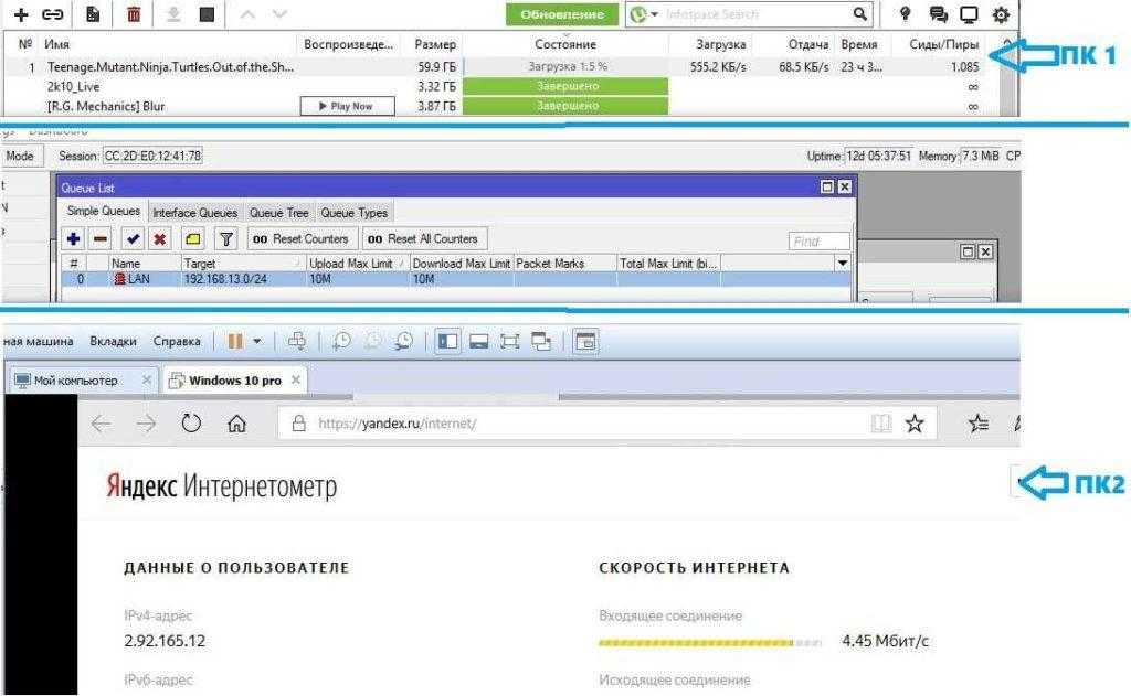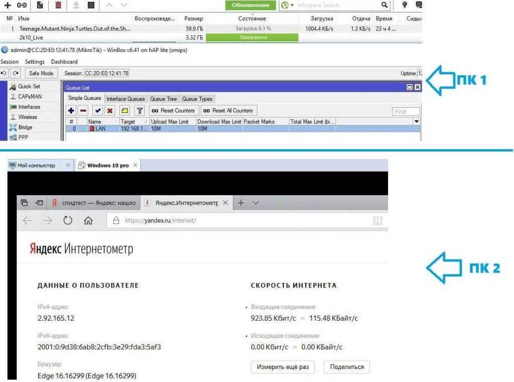 В такой ситуации если два ПК начнут пользоваться интернетом, первый качать торрент второй просто серфить в интернете, то для второго все будет очень печально так как торрент съест все установленные нами 10Mb\s. Посмотрим на примере: