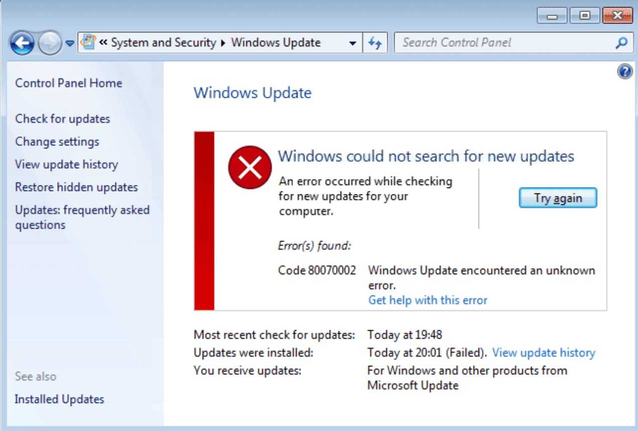 Возникновение ошибки с кодом 0x80070002 в других случаях