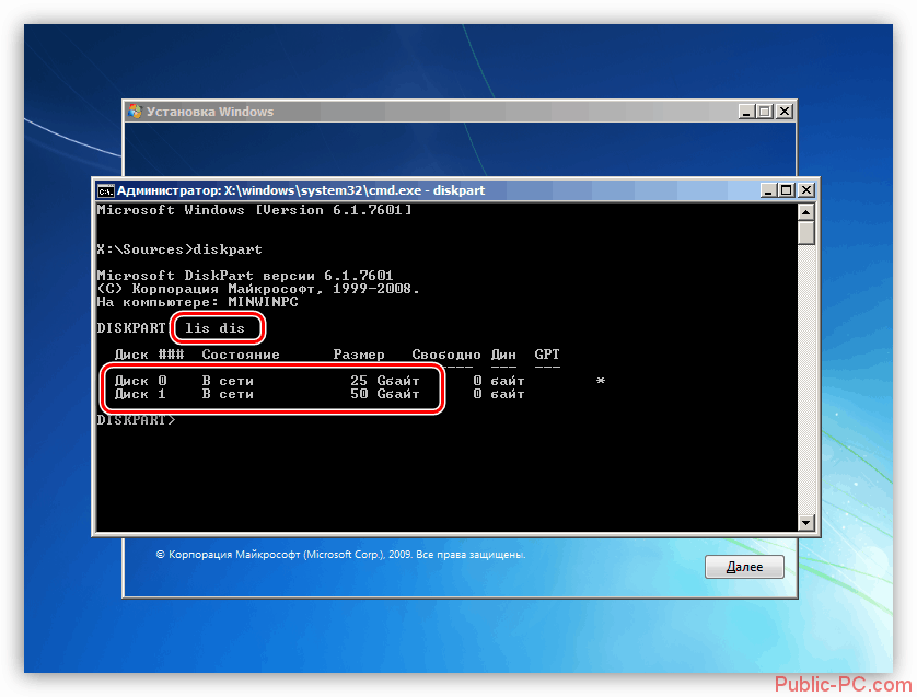 Пропишите команду lis dis, чтобы открыть перечень всех имеющихся дисков.
